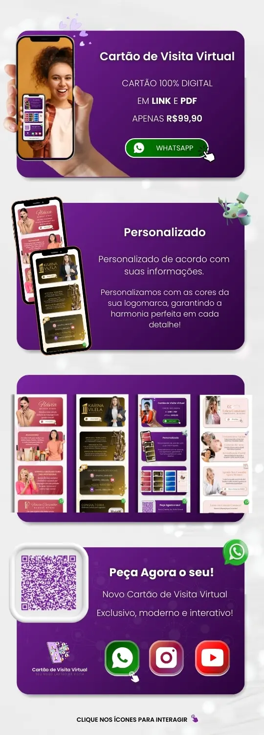 Você tem poucos segundos para causar impacto em seu cliente. Com o Novo Cartão de Visita Virtual, cada clique é uma chance de fechar negócio.